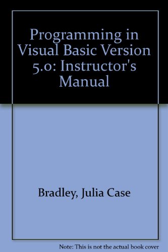 Instructor's Manual: Im Programming Visual Basic V5.0 by Bradley accessibility Books LIbrary as well as its powerful features, including thousands and thousands of title from favorite author, along with the capability to read or download hundreds of boos on your pc or smartphone in minutes.